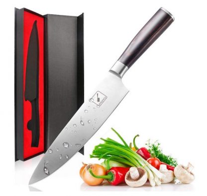 • ULTRASCHARFE KLINGE: Ultra Scharfe Klinge ist aus hochwertigem deutschem Edelstahl. Die Klinge ist definitiv rostbeständig. Dies gibt dem Kochmesser eine feine glatte Oberfläche, Das elegante Küchenmesser für Profis und Hobbyköche ist optimal geeignet zum Schälen, Schneiden oder Würfeln verschiedener Lebensmittel.