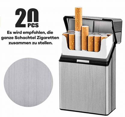 - Abmessungen: 9cm x 5.8cm x 2.6cm, für bis zu 20 Zigaretten