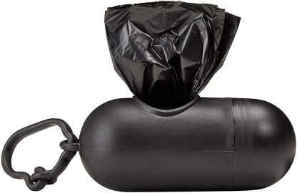 300 schwarze Hundekotbeutel mit Beutelspender und Leinenclip