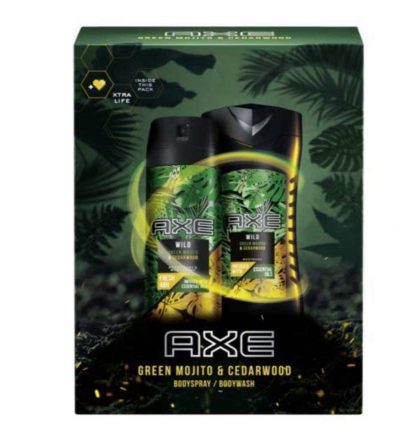 - Das AXE Geschenkset Wild Green Mojito und Cedarwood enthält das Bodyspray und das Bodywash für die tägliche Pflegeroutine