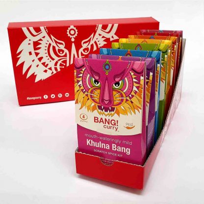 Du bist auf der Suche nach einem Foodie-Geschenk? Unser BANG! Geschenkset liefert fünf Curry-Geschmacksrichtungen, sowie die beliebten BANG Beilagen Biryani, Bhajis und Dahl. Die Biryani, Bhajis und Dahl Kits enthalten neben den Gewürzen auch Reis, Mehl und Linsen, um den Einkauf noch einfacher zu gestalten! Chili-Stärken: MILD, MITTEL, SCHARF