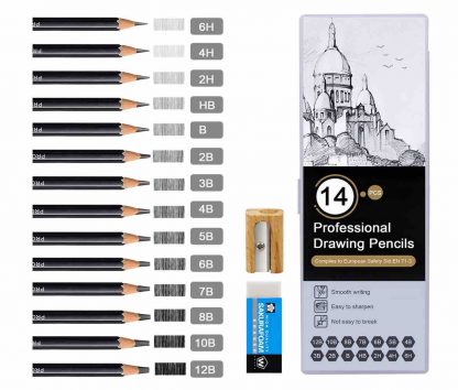 - PROFESSIONELLES SET: Dieses Skizzenstiftset enthält eine große Auswahl an Stiften für die Anforderungen des Kunstwerks und von sehr weich bis sehr hart: 12B 10B 8B 7B 6B 5B 4B 3B 2B B HB 2H 4H 6H
