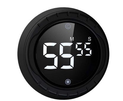 - Drehen Sie einfach den Knopf und drucken Sie eine Taste, um die Countdown-Zeit oder das Timing schnell einzustellen, im Uhrzeigersinn, um die Zeit zu erhohen, und gegen den Uhrzeigersinn, um die Zeit zu verkurzen.