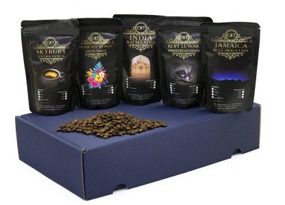- ✅ 100g Kopi Luwak -100g Jamaica Blue Mountain – 100 g Hawaii Kona – 100 g Australien Skybury – 100 g India Baalmadi – als ganze Bohne – in edler Geschenkverpackung