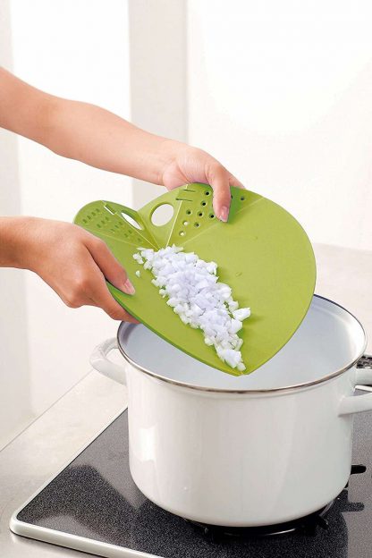 - ✅ Schneidebrett: Durchmesser: 27 cm. Einklappbar und platzsparend. Obst, Gemüse, Fisch, Fleisch, etc. lässt sich nach dem Schneiden kinderleicht über der Spüle abwaschen. Antibakteriell und spülmaschinenfest. Material: Kunststoff.