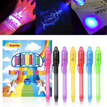 🌈Unsichtbarer Tintenstift – Sobald Ihre geheime Nachricht mit diesem unsichtbaren Tintenstift geschrieben wurde, warten Sie einige Sekunden, um das Licht aus dem Deckel des Stifts zu leuchten und das Geheimnis der geheimen Nachricht zu enthüllen.