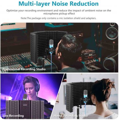 - Vielseitigkeit: Der dreifach gefaltete Mikrofon Isolationsschild kann auf einer Arbeitsplatte oder Tischplatte befestigt und auch an einem Mikrofonständer montiert werden (Mikrofon und Ständer müssen separat erworben werden).
