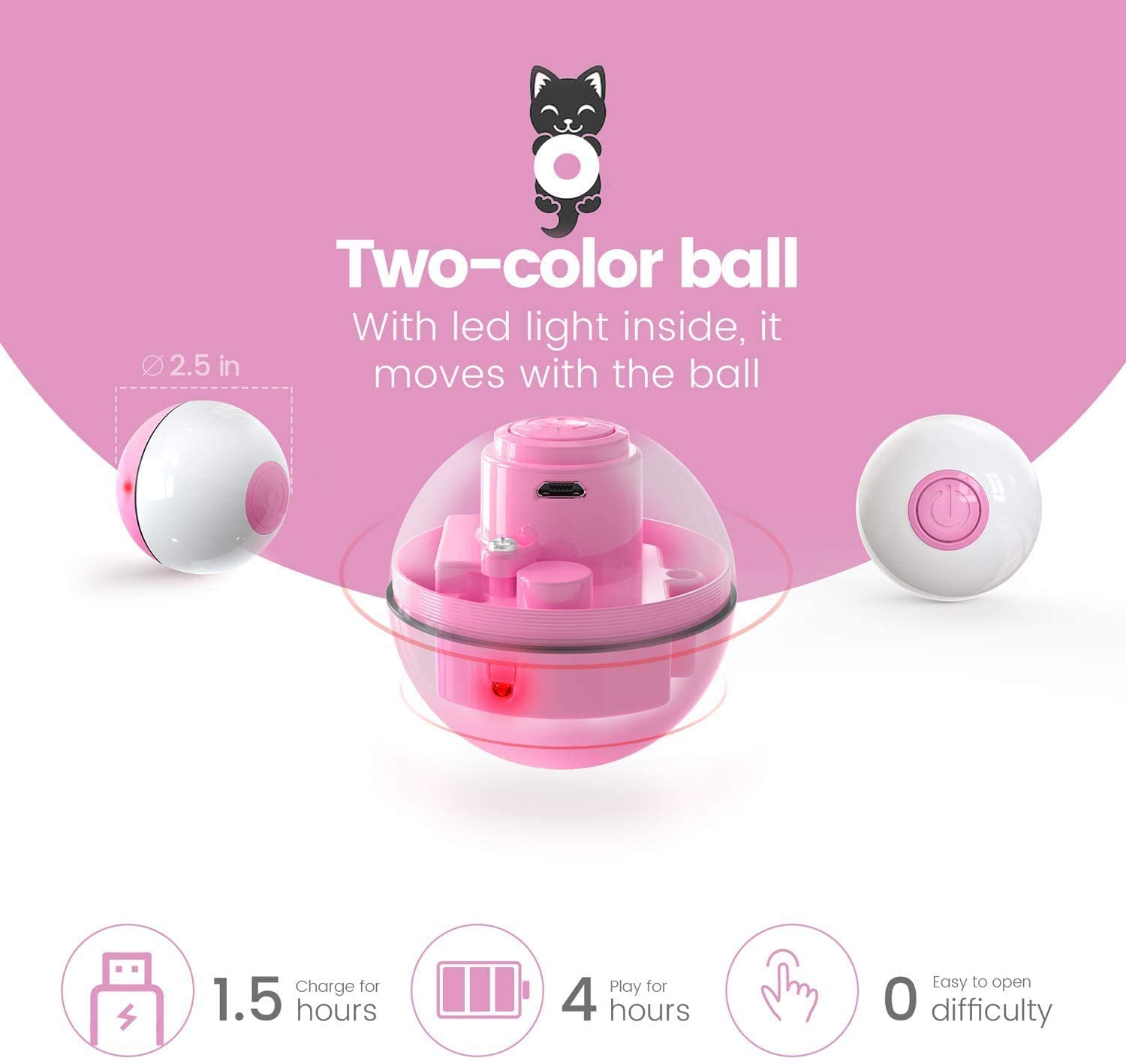 【Neuartige Farbe & Aufladbare USB-Version】Der Elektrischer Katzenspielball aus 2-1 Farben (white und pink) ist es interessanter für Ihre Katze.Eingebauter 250-mAh-Li-Ion-Akku, kann nach 1,5-stündigem Aufladen 4 Stunden halten.