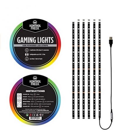 - ENTHÄLT 6 MEHRFARBIGE LED-STREIFEN UND 5 VERBINDER – kombinierbar bis zu einer Länge von 2.7 Meter. Inklusive USB-gesteuerten Inline-Controller zur Anpassung von Farben, Effekten, Helligkeitsstufen und Geschwindigkeiten