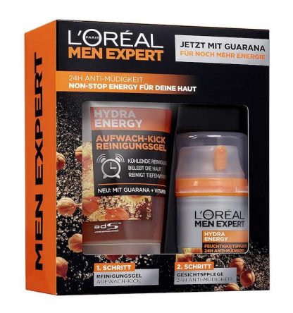 - Lieferumfang: 1x L’Oréal Paris Men Expert Geschenk Set für Männer, inkl. 1x Hydra Energy Aufwach-Kick Reinigungsgel für das Gesich (100 ml) und 1x Hydra Energy 24H Anti-Müdigkeit Gesichtscreme (50 ml)