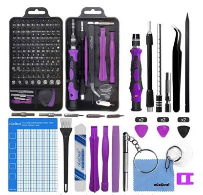 - oGoDeal 127-in-1 Schraubendreher-Set,vielseitig,deckt all Ihre Reparaturanforderungen ab.Es enthält 103 Präzisions-Schraubendrehereinsätze (Torx,Torx Security,Pentalobe,Phillips,Flachkopf-Schraubendreher und mehr) und ein 24-teiliges Werkzeugset,mit weichen und harten Verlängerungen,Pry-Werkzeuge mit Brechstange,Spezielles Stemmwerkzeug und Saugnapf.Ist außerdem mit einer antistatischen Pinzette und rutschfesten Silikongriffen ausgestattet.