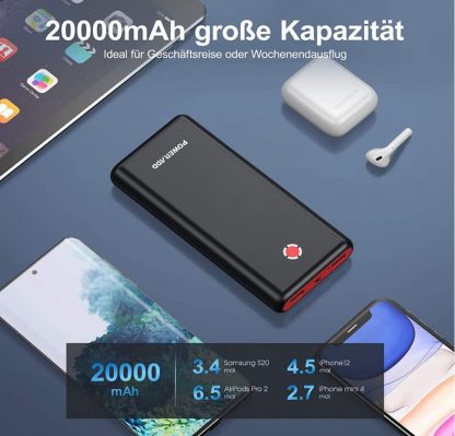 ⚡【PD 18W 20000mAh große Kapazität】Mit der 20000mAh USB C Powerbank PD 18W können Sie Ihr Gerät mehrmals unterwegs aufladen. Es gibt ausreichende Kapazität für Ihre Reise.